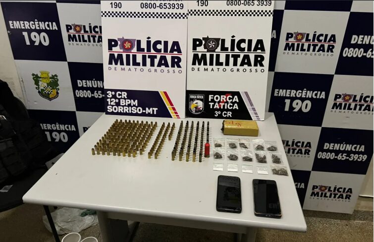 A Polícia Militar de Mato Grosso prendeu um homem de 38 anos e uma mulher de 25 durante uma ação contra o tráfico de drogas realizada no bairro São Matheus, em Sorriso. A operação mobilizou equipes do 3º Comando Regional e da Força Tática após denúncias anônimas, e, assim, direcionou as diligências até o endereço investigado. Durante a abordagem, os suspeitos resistiram às ordens policiais e, nesse momento, os agentes reagiram de forma imediata para contê-los e garantir a prisão. Em seguida, os policiais apreenderam grande quantidade de munições, entorpecentes e dinheiro, o que reforçou a suspeita de atuação criminosa estruturada. Além disso, a ação integra as operações Tolerância Zero e Renue, que ampliam o combate direto à criminalidade na região.