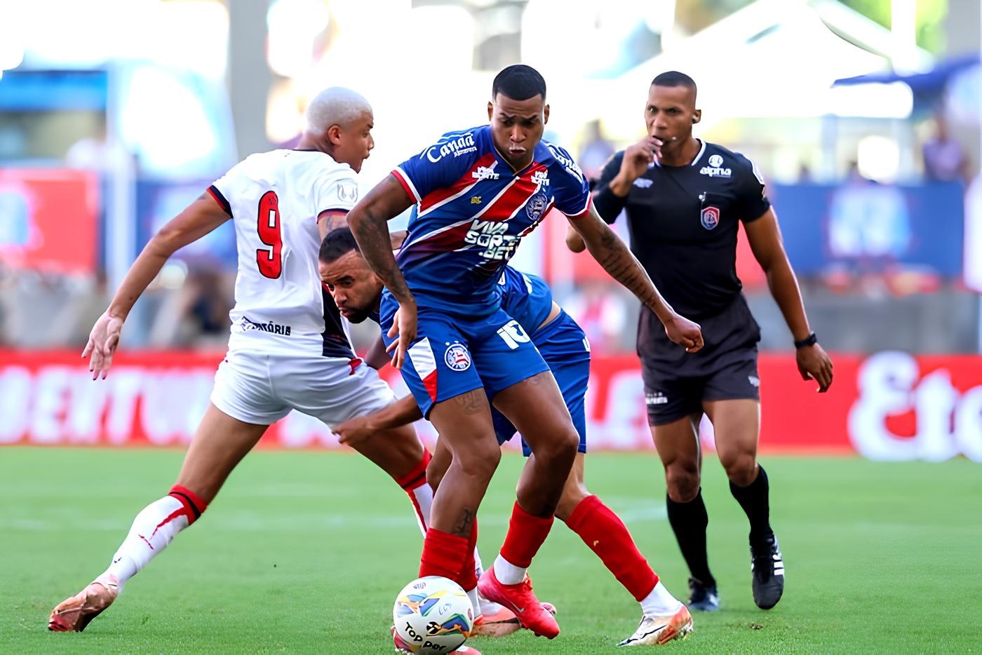 Desde o início, o Bahia assumiu uma postura ofensiva, buscando pressionar o adversário. No entanto, o goleiro Lucas Arcanjo se mostrou imbatível. Ele realizou defesas cruciais em momentos decisivos, impedindo o Tricolor de abrir o placar. Por causa de suas intervenções, o Vitória conseguiu segurar o empate e evitar uma possível derrota.