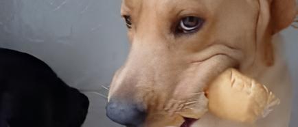 Cachorro guloso não divide o pão e viraliza na web, imagens circulam na web. Veja vídeo: