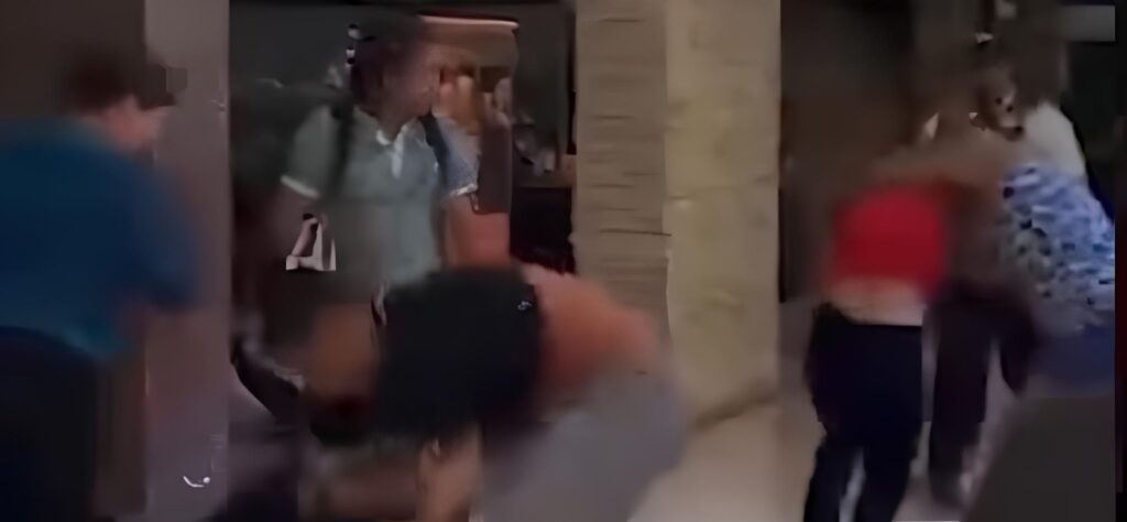 As redes sociais exibiram uma briga registrada que mostra cenas de socos e chutes entre os envolvidos. As imagens capturam o momento em que um dos homens desferiu vários socos no rosto de uma das mulheres. Em seguida, ele iniciou uma luta com o outro homem.
