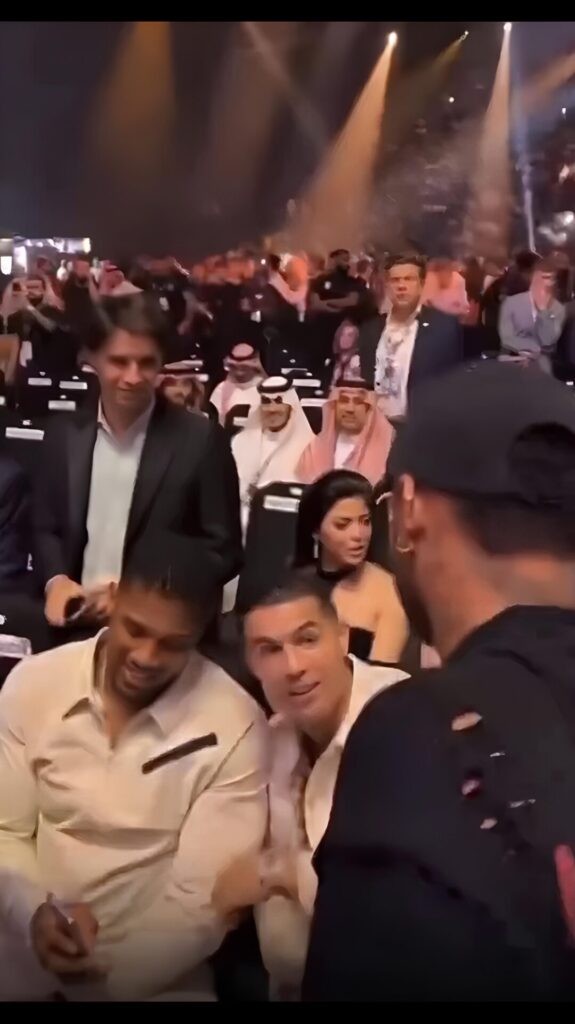 Na tarde deste sábado, 18 de maio de 2024, Cristiano Ronaldo e Neymar se encontraram na Arábia Saudita. O vídeo do encontro, que rapidamente viralizou nas redes sociais, mostra os astros do futebol em Riad, trocando palavras de incentivo antes da luta entre Tyson Fury e Oleksandr Usyk. A gravação destaca não apenas a amizade entre os dois, mas também a magnitude do evento, que atraiu atenção global.