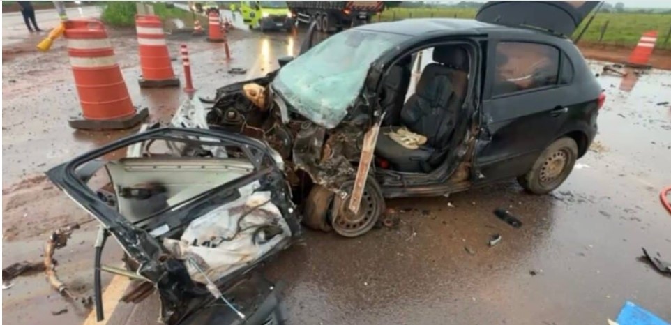 Duas pessoas receberam atendimento médico após uma colisão entre uma carreta Scania branca e um carro VW Gol preto na manhã desta quarta-feira (21), na BR-163, em Sinop, no norte de Mato Grosso, nas proximidades da Inpasa. O acidente ocorreu durante chuva e, logo depois do impacto, mobilizou equipes da concessionária que administra a rodovia e o Corpo de Bombeiros. O carro seguia no sentido Sinop quando atingiu a lateral esquerda da carreta e, como resultado, sofreu danos severos. Apesar da força da colisão, os socorristas encontraram as vítimas conscientes e em condições estáveis, o que permitiu atendimento rápido e seguro ainda no local.