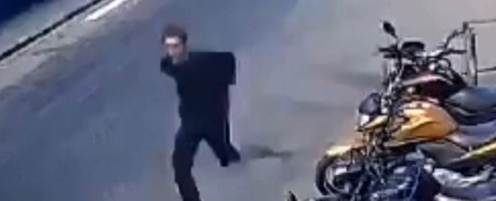 Segundo as imagens divulgadas, tudo começou quando o homem, sob custódia policial, aproveitou um momento de distração dos agentes para iniciar sua fuga. O detalhe que mais chama atenção é que ele estava algemado, o que não impediu sua tentativa audaciosa de escapar. A câmera de monitoramento do local capturou o momento em que ele correu em direção a um estacionamento de motocicletas. Passando entre os veículos na tentativa de despistar seus perseguidores.