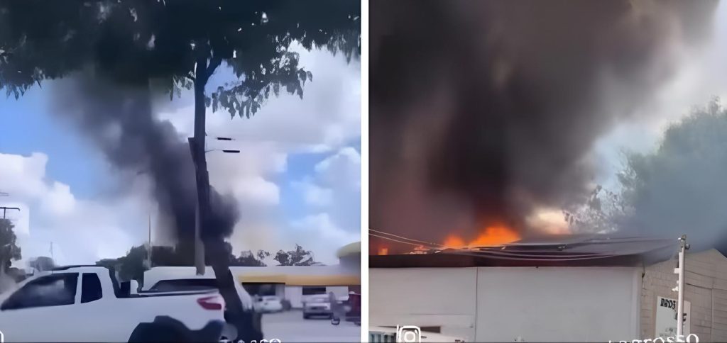 Incêndio de grandes proporções destrói empresa de logística em Cuiabá. Veja Vídeo: