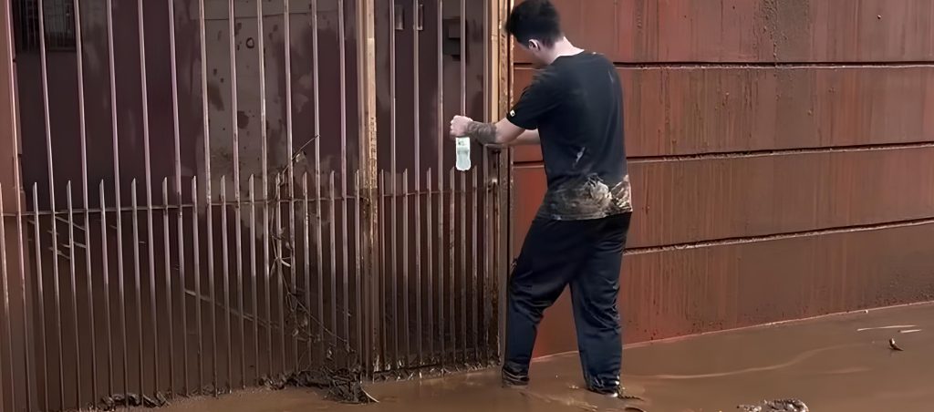 Nos vídeos postados, Jesiel entra em sua residência, que está completamente invadida pela lama, afetando ambos os andares da casa. As imagens capturam o teto, marcado pela altura alcançada pela água, e mostram o caos deixado pelo evento: móveis, objetos pessoais e roupas estão espalhados e destruídos, ilustrando a severidade da situação.