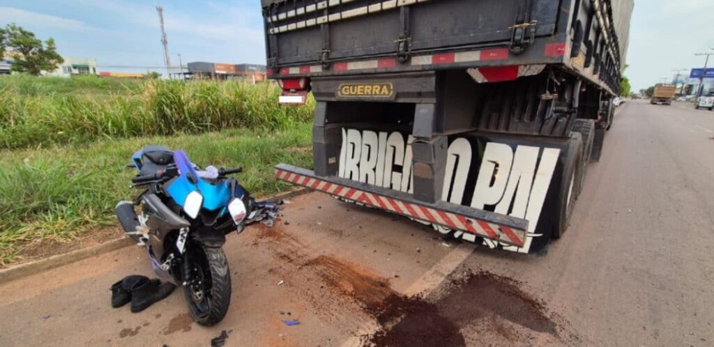 A Polícia Militar, que registrou a ocorrência, investiga a hipótese de que a moto tenha sido fechada por outro carro antes do choque contra a carreta. O impacto danificou a carenagem, guidão, assento e retrovisores da motocicleta. Testemunhas relataram que o trânsito no local estava intenso, o que aumenta o risco de acidentes semelhantes, principalmente em trechos urbanos próximos às rodovias. A perícia deve esclarecer se fatores como velocidade e distância entre veículos contribuíram para a colisão.