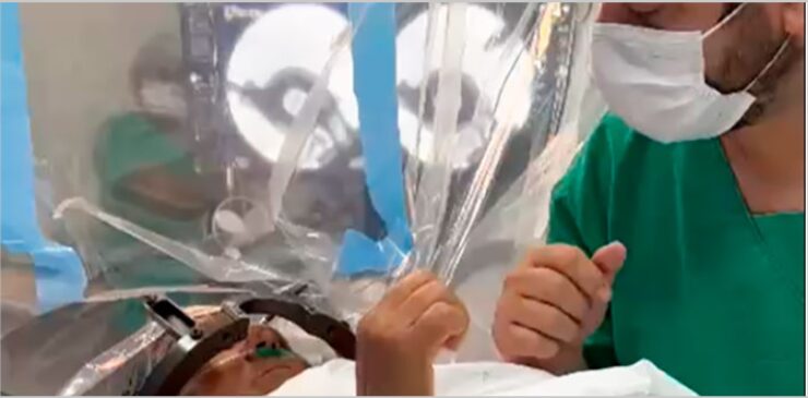 A equipe médica realizou uma talamotomia estereotáxica, técnica que atua em áreas profundas do cérebro para controlar tremores.