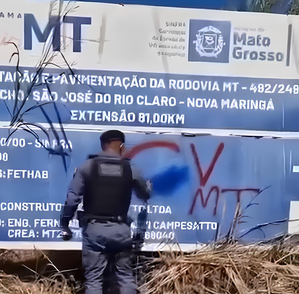 Na manhã desta sexta-feira (17). Um vídeo que viralizou nas redes sociais mostra um policial militar apagando uma pichação feita por uma facção criminosa em uma placa de obra do Governo do Estado. O incidente ocorreu na estrada que liga os municípios de São José do Rio Claro e Nova Maringá, em Mato Grosso.