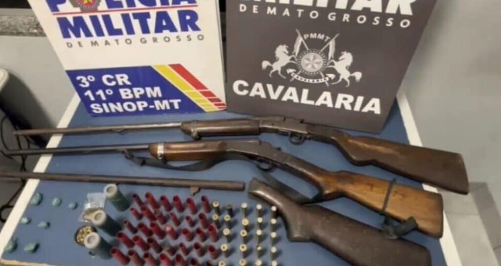 Na noite de ontem, a Polícia Militar deteve um homem não identificado no bairro Belvedere, durante patrulhamento de rotina. O suspeito chamou atenção da equipe por comportamento suspeito, levando os policiais a realizarem uma revista detalhada. No momento da abordagem, os agentes encontraram duas armas calibre 28, um cano e empunhadura de espingarda, além de três munições intactas calibre 28 e 11 munições calibre 36.