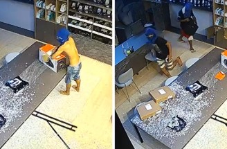 As imagens mostram que um dos suspeitos, sem camisa e usando bermuda jeans, liderou a invasão ao derrubar a porta de vidro, que caiu sobre uma mesa de exposição. Em seguida, os outros dois comparsas entraram no local; um vestia camiseta preta e short listrado, enquanto o outro usava camiseta preta e short vermelho. Para dificultar a identificação, todos cobriram parcialmente o rosto com camisetas. Na sequência, os criminosos abriram gavetas, vasculharam prateleiras e reviraram caixas, colocando os itens furtados em mochilas. Poucos minutos depois, eles deixaram o estabelecimento e desapareceram pela avenida.