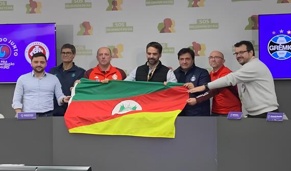 Grêmio e Internacional, em um esforço conjunto, lançaram a campanha “Jogando Junto” para ajudar na reconstrução do Rio Grande do Sul após as devastadoras enchentes. No evento realizado no Centro Administrativo de Contingência do Governo do RS, os presidentes Alberto Guerra (Grêmio) e Alessandro Barcellos (Inter), juntamente com o governador Eduardo Leite, anunciaram a iniciativa.