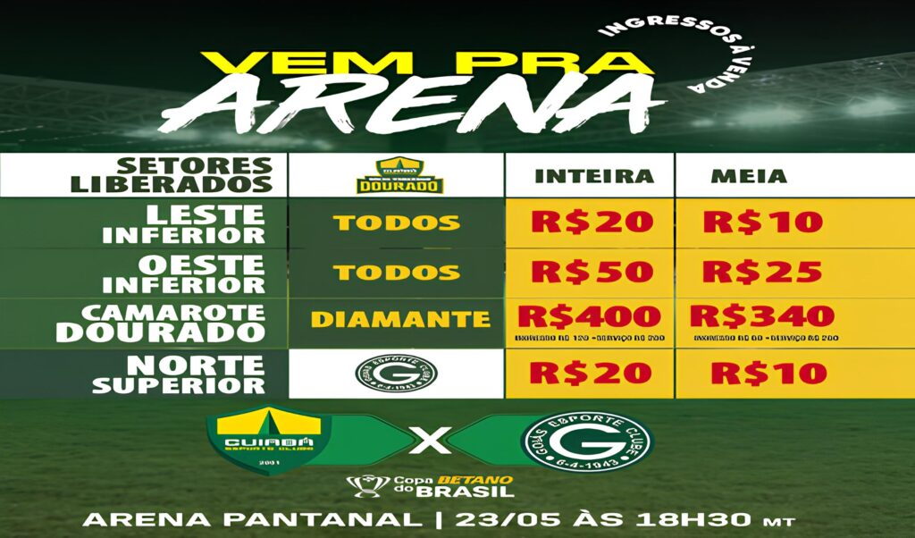 Nesta quinta-feira, Cuiabá e Goiás se enfrentam para decidir quem avançará às oitavas de final da Copa do Brasil. A Arena Pantanal sediará o jogo de volta, com início marcado para as 18h30 (horário de Cuiabá). Os ingressos para a partida custam a partir de R$ 10, oferecendo aos torcedores uma oportunidade acessível para apoiar seus times.